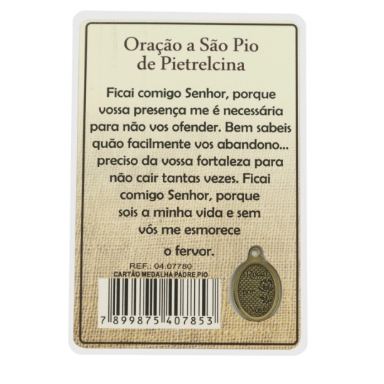 Para os fiéis da Igreja Católica que desejam estar mais próximos desta poderosa devoção, apresentamos o Cartão Padre Pio. Uma maneira de sempre levá-lo consigo na carteira, bolsa, mochila, carro ou até mesmo no bolso da calça.