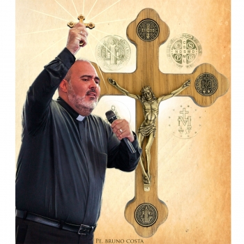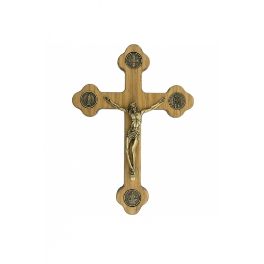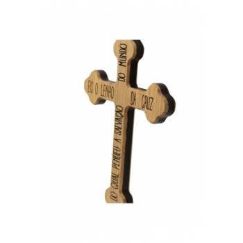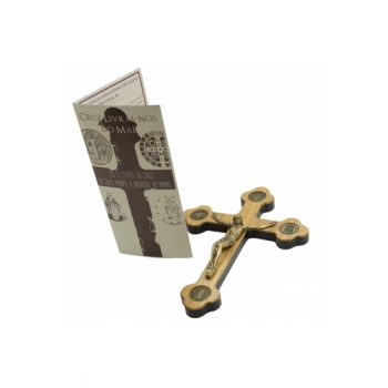 A Cruz Livrai-nos do Mal é confeccionada em madeira, metal e marfim, nas seguintes medidas 17,07x12,07x1,07 cm.