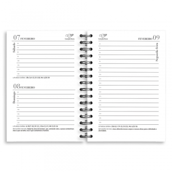 Mensagens Diárias Inspiradoras: As páginas diárias incluem mensagens que fortalecem sua fé e o aproximam de Deus, tornando cada dia uma oportunidade para reflexão espiritual.