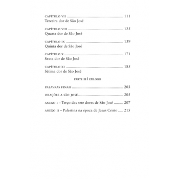 “Ó glorioso São José, vós nos conduzistes nestas orações e reflexões sobre as dores que sofrestes na qualidade de protetor de Maria Santíssima e de Jesus Cristo. Vós que fostes o representante de Deus Pai na terra para cuidar e proteger a Sagrada Família, atendei às nossas súplicas para que, com vossa intercessão e ao vosso lado, cheguemos um dia à santa presença de Maria Santíssima e do Deus Uno e Trino”.